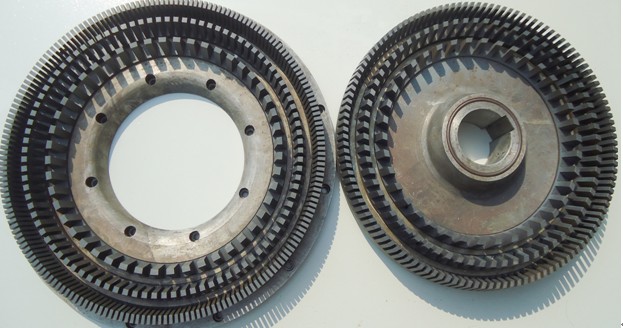 我公司生产的高剪切胶体磨齿,采用了分体组合式结构,便于维修和更换磨齿。材质使用高强度合金工具钢,洛氏硬度可达50度以上,硬度高耐磨损。